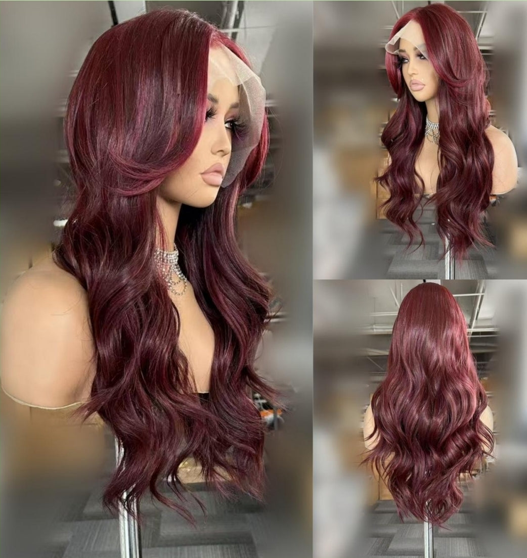 Meet CHERRY WINE - a stunning 24-inch layered burgundy lace front wig designed for women who want depth, drama, and undeniable presence.